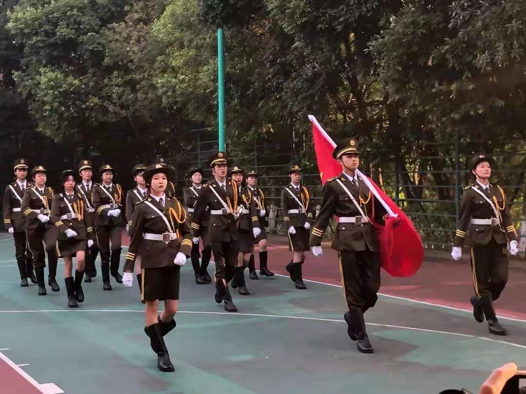 国旗护卫队迈着坚定整齐的步伐走向升旗台