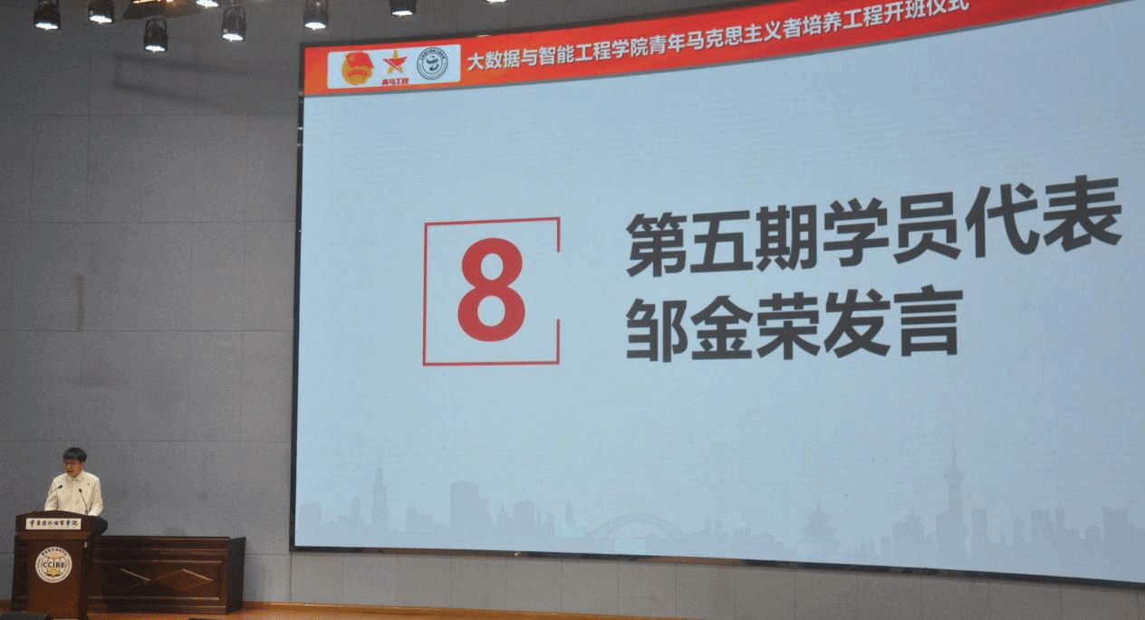 新学员代表邹金荣随后围绕“坚定信仰,筑梦前行”这一主题进行发言,号召学员们坚定马克思主义信仰,让青春在奋斗中迸发光彩。