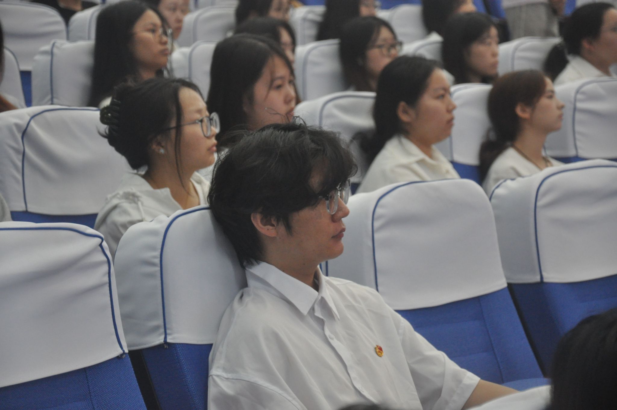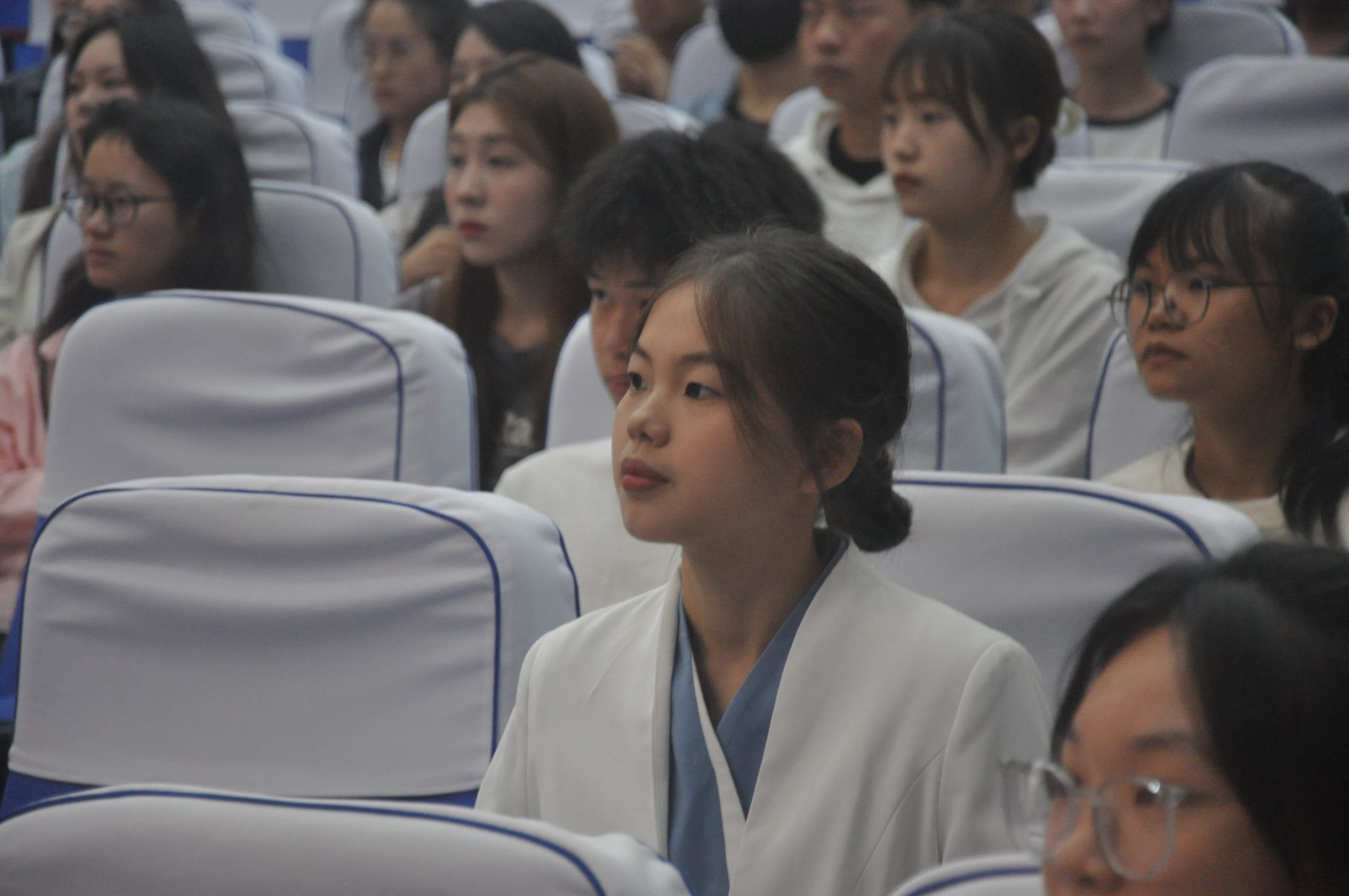 图为现场同学认真观看微团课