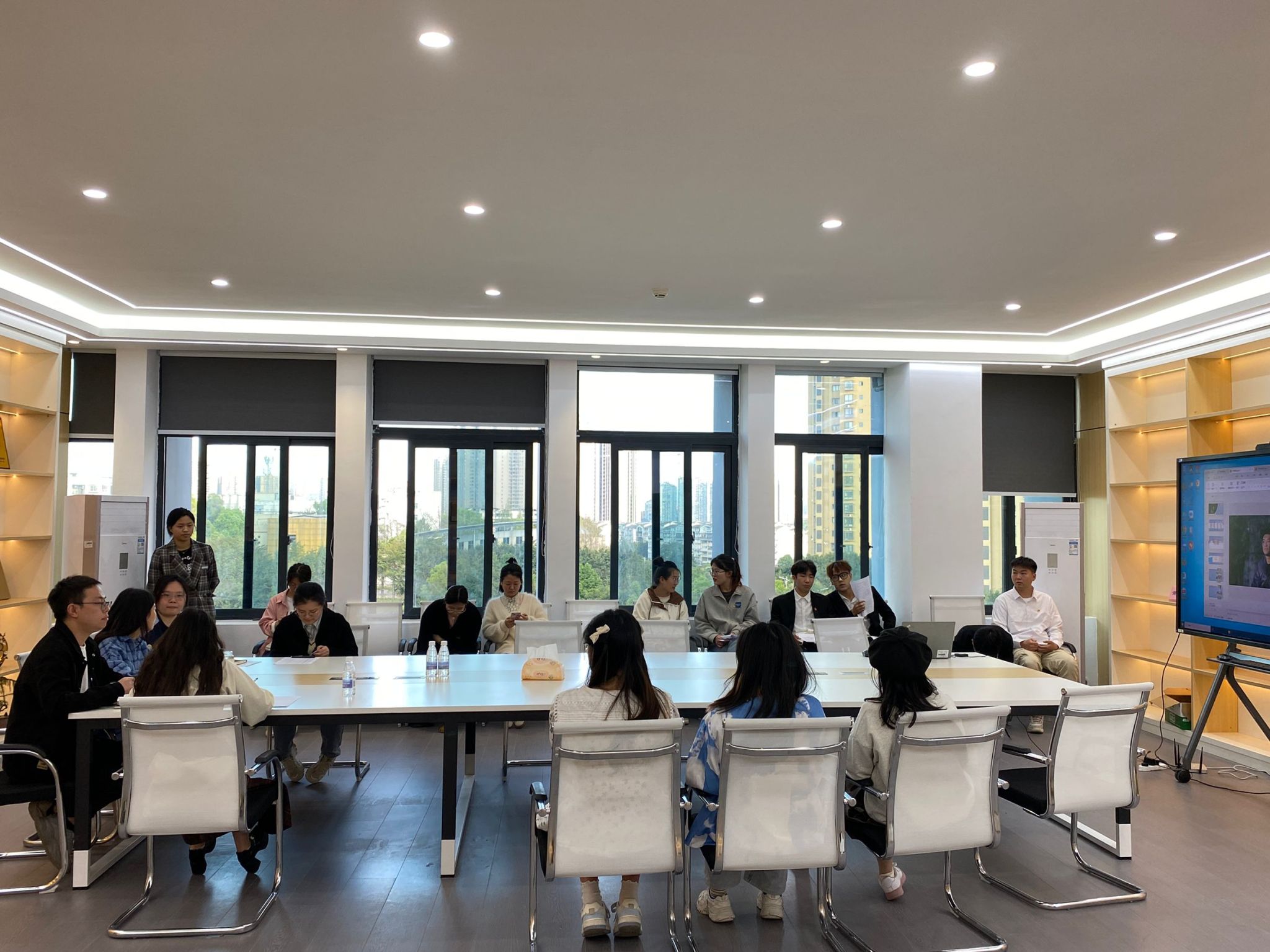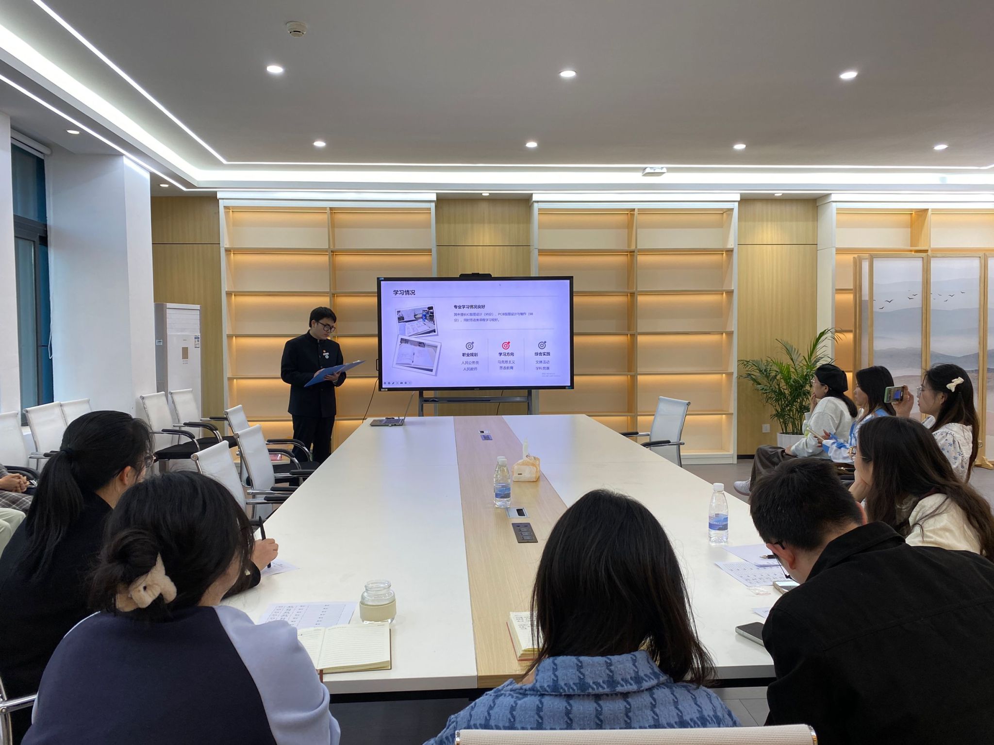 本次有13名入党积极分子参与入党发展对象答辩,答辩分为个人陈述和现场提问两个环节,陈述围绕入党动机、学习工作情况和实效、为他人办实事等方面进行5分钟内的展示,提问环节是在答辩者展示完后,由评委进行提问,答辩者进行作答。