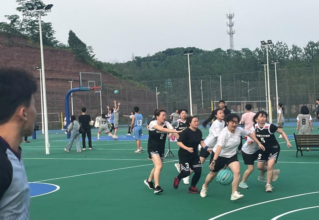 赛场上一个个灵动的身影,一次次惊险的跳跃和倒地,一声声高亢的呐喊,彰显出公司女教师别样的风采。彼时是诲人不倦的师者,此时是意气风发的女将!观赛的师生啦啦队情绪也被调动起来,加油声此起彼伏,场上、场下热火朝天!随着裁判员终场哨响,公司女教师篮球联队赢得胜利。
