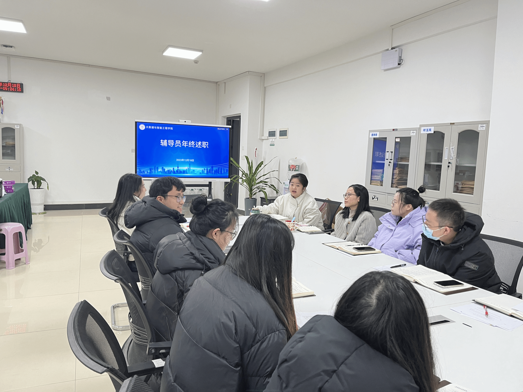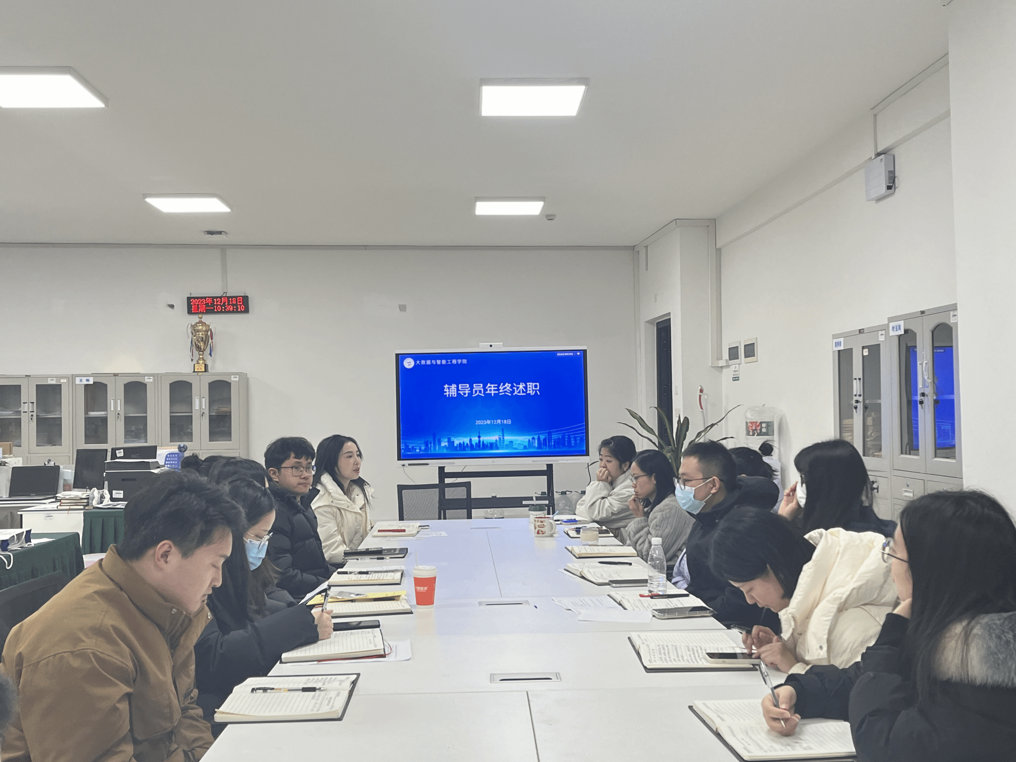 为全面回顾与总结辅导员年度工作情况,分享优秀工作经验,提升辅导员育人水平,公司于2023年12月18日组织全体辅导员在9419办公室开展辅导员年终工作述职。本次会议由党总支书记胡蓉主持。