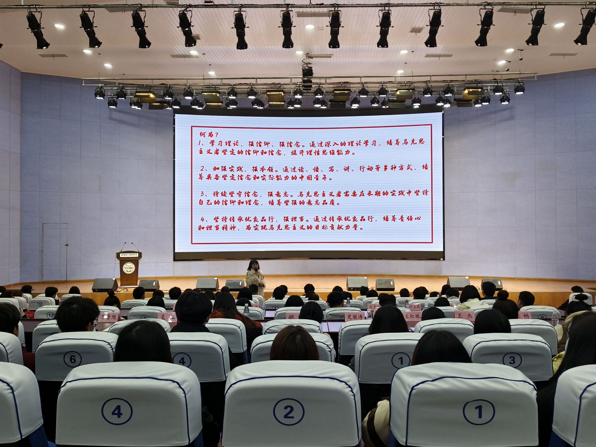 校团委书记史丽涛总结讲话,并为全体学员上了生动的第一课。她围绕为什么要参加“青马工程”、什么是青年马克思主义者、怎样做一个坚定的青年马克思主义者三个方面内容,通过现场互动、小故事讲述、理论知识普及、真实案例引导等,启迪学员坚定理想信念、强化政治担当、勇担时代使命。