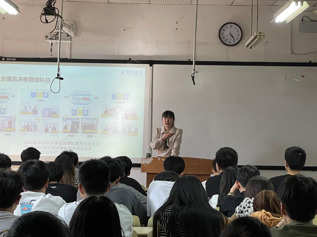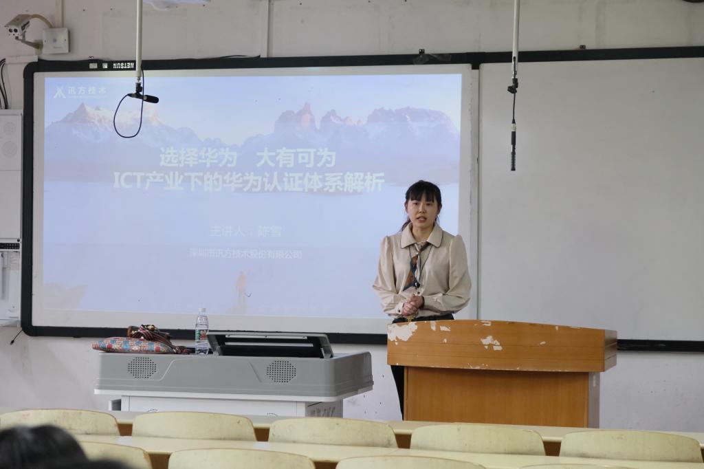 为深化公司员工对ICT产业的了解,鼓励员工积极参加ICT产业相关竞赛,提升专业技能,公司于4月21日在合川校区3303教室开展了两场以“选择华为·大有可为·ICT产业下的华为认证体系解析”专题讲座。主讲人陈雪,为深圳市讯方技术股份有限公司重庆区域校企合作经理、国家二级企业人力资源管理师、高级数据处理师。当天,公司260名员工参与讲座。