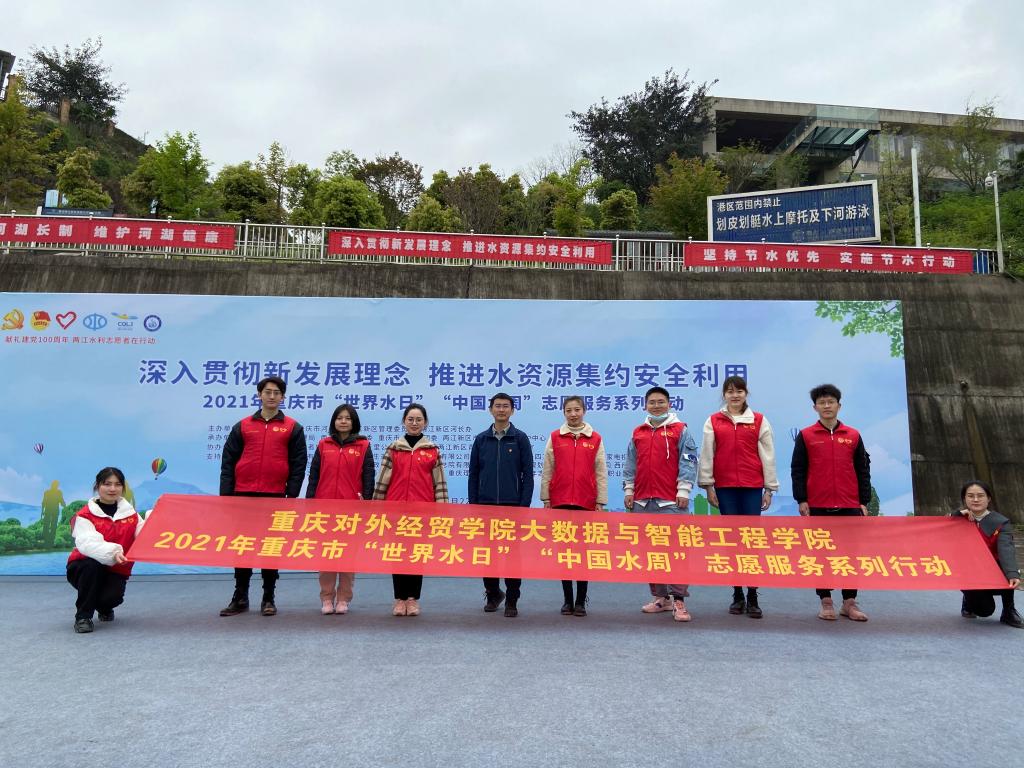 "世界水日""中国水周"志愿服务系列活动包含青少年之家节水护水课堂、垃圾分类宣传互动游戏体验、"巡嘉陵河畔,护两岸青山"清理沿途河道周边垃圾、"我为节水护水代言、我为守护母亲河代言"等互动与活动。王浩、刘巧两名志愿者充分展示了公司学子良好的精神风貌,在活动中普及节约用水、护水爱水的理念意识,宣传生态文明思想,号召广大青年、广大市民用青春力量把重庆建设为山清水秀美丽之地。