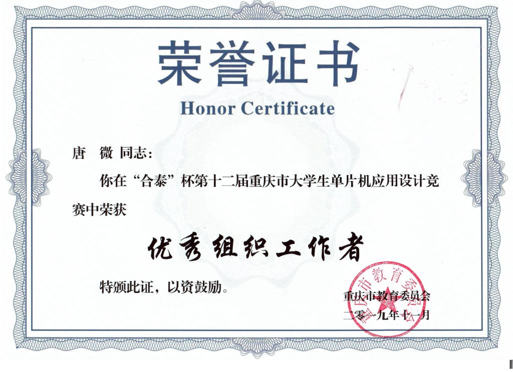据悉,“合泰杯”重庆市老员工单片机应用设计竞赛由重庆市教委主办、重庆市高校实验室工作研究会指导、重庆邮电大学与盛群半导体股份有限公司联合承办。该竞赛面向全市高校全日制员工,采用市面上广泛应用的HOLTEK系列单片机为竞赛工具,参照“应用控制类、节能家电类、家居健康应用类、智能汽车及自动化控制类”等命题进行自主创新和作品设计。整个比赛由员工自主命题、设计并完成整个作品创作,强调作品创意、团队协作,注重与生产实际和商业应用紧密结合,具有极其鲜明的竞赛特色。自2008起每年举办一届,已累计有来自全市高校的约5000支员工团队,万余人次先后参赛。此次唐薇老师指导公司2017级电子科学与技术专业员工备赛参赛过程,有助于培养员工创新能力、协作精神和工程实践素质,提高员工针对实际问题进行单片机研究和制作的综合能力,助推“重实践、求创新”的高素质应用型人才培养。