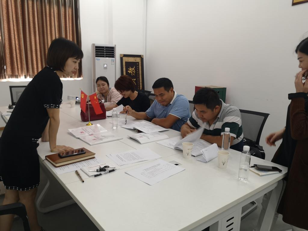 曾老师和何老师就公司党建工作的开展以及存在的困难向督查小组作了汇报。督查小组对公司党建工作材料,包括党政联席会的召开、党总支会的召开、政治理论学习情况、党员发展材料、党费收缴等方面进行了详细的检查和指导,认真查看了公司员工的入党申请书和思想汇报。经过一番详尽的查看和交流,督查小组对公司党建工作充分肯定的同时也提出了不足之处。公司党总支书记胡蓉老师对督查小组表示了感谢,同时也对今后公司党建工作的开展也提出了更新更高的要求。