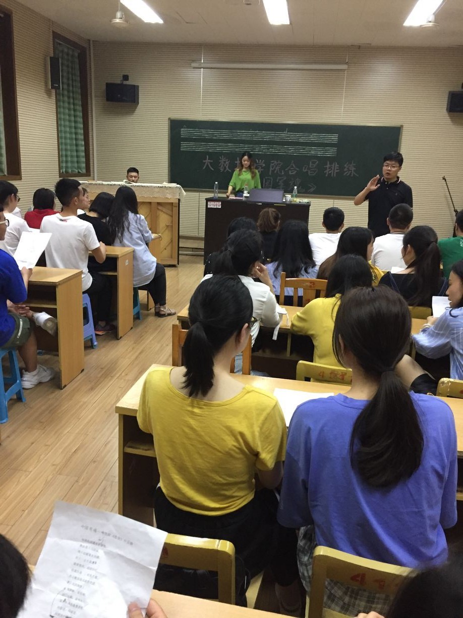 在进行训练之前,表演艺术公司李欢师通过听取每位员工的歌唱声音来选拔低声部和高声部的成员,然后进行分开训练。老师、同学们都以认真的态度、激昂的姿态歌唱“滚滚黄河、滔滔长江,给我生命,给我力量”。低声部师生门则以优美却又充满力量的声音歌唱“就让鲜血染红最美的花,洒在我的胸膛上”。高低的声音此起彼伏,回音不绝。