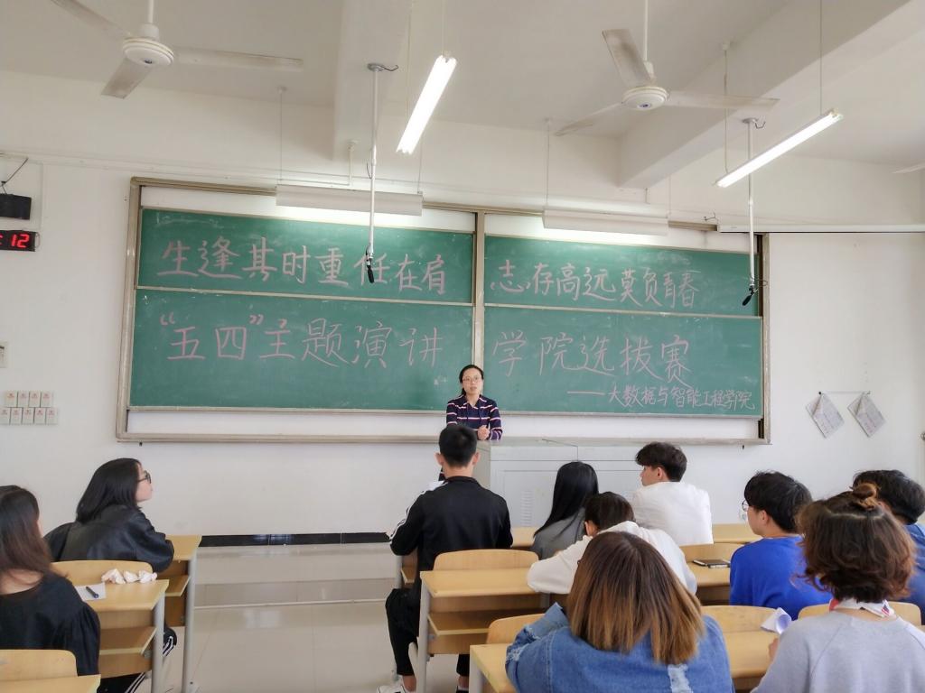 2019年4月16日中午,以“生逢其时重任在肩·志存高远莫负青春”为主题的五四演讲比赛公司铜梁校区选拔赛在B409教室举行,来自数据科学与大数据技术、电子科学与技术、物联网工程、数字媒体技术四个专业的14名选手展开精彩角逐。团总支书记王红妹老师现场指导,各专业班团干部、普通员工等担任员工评审,选手亲友团自发来到现场加油助威。