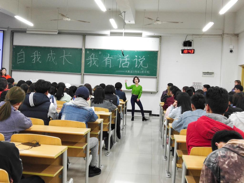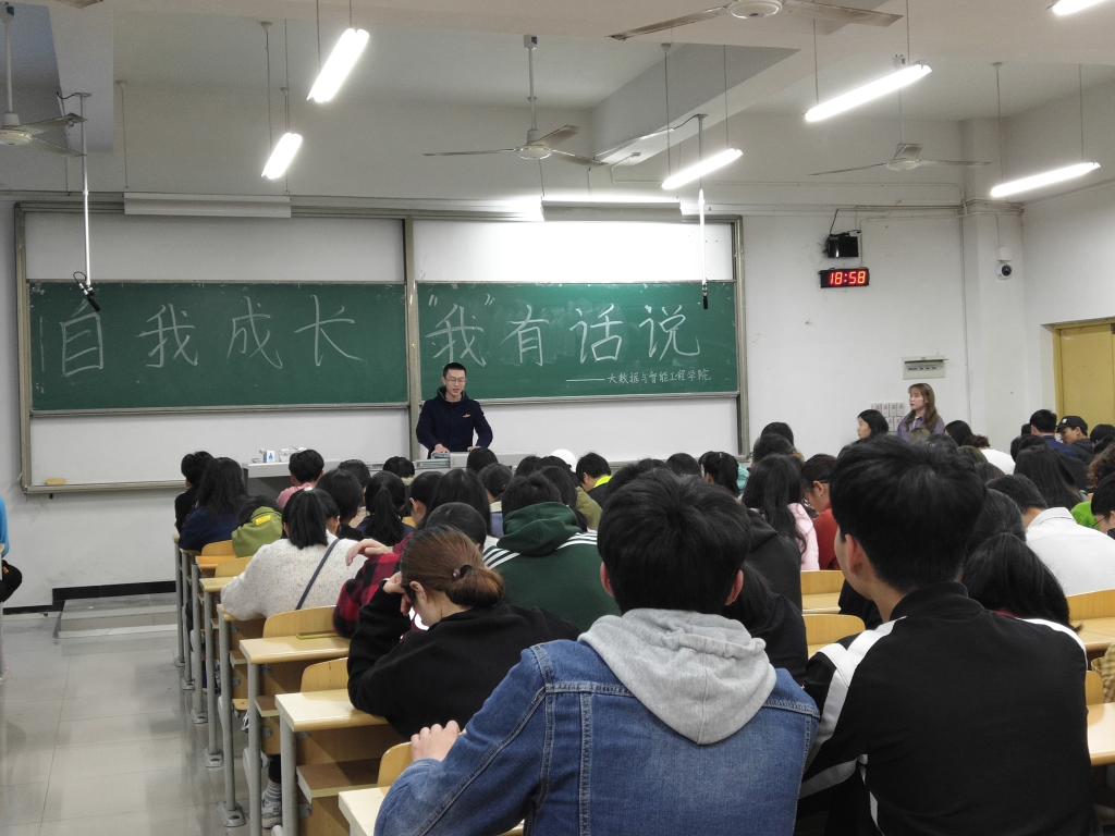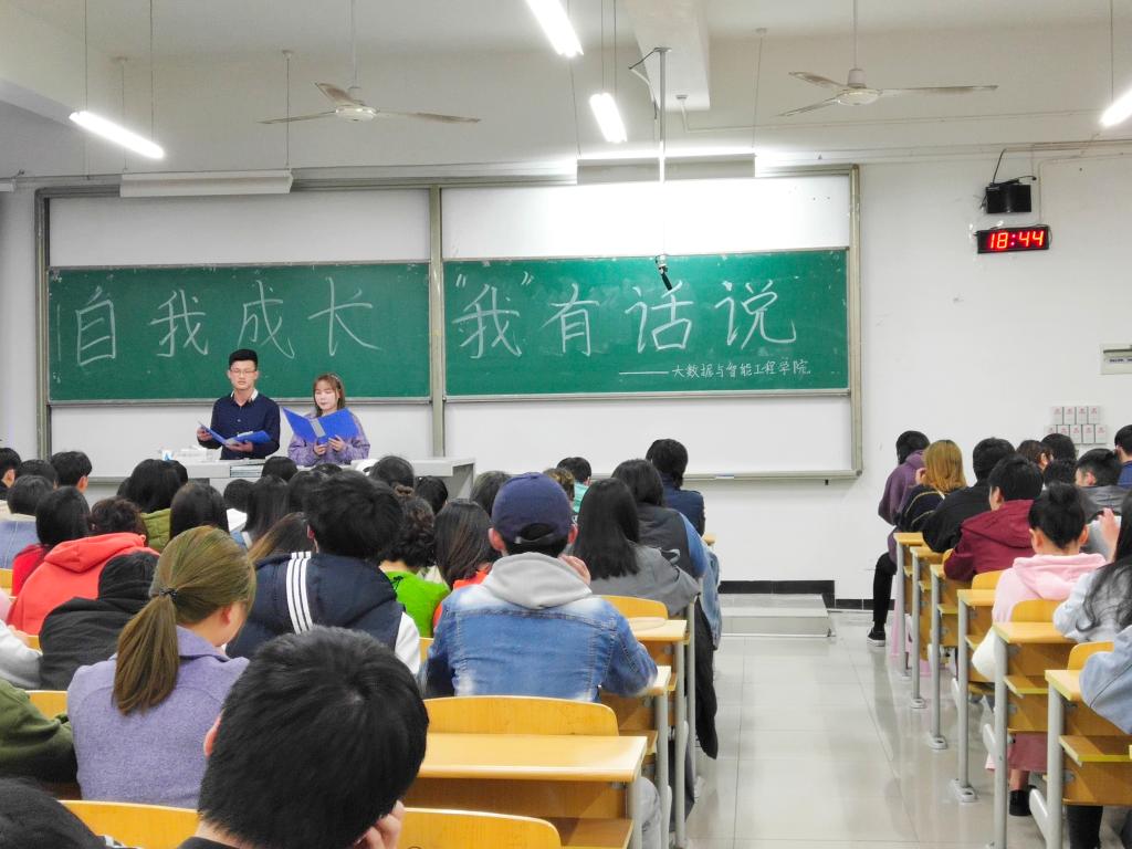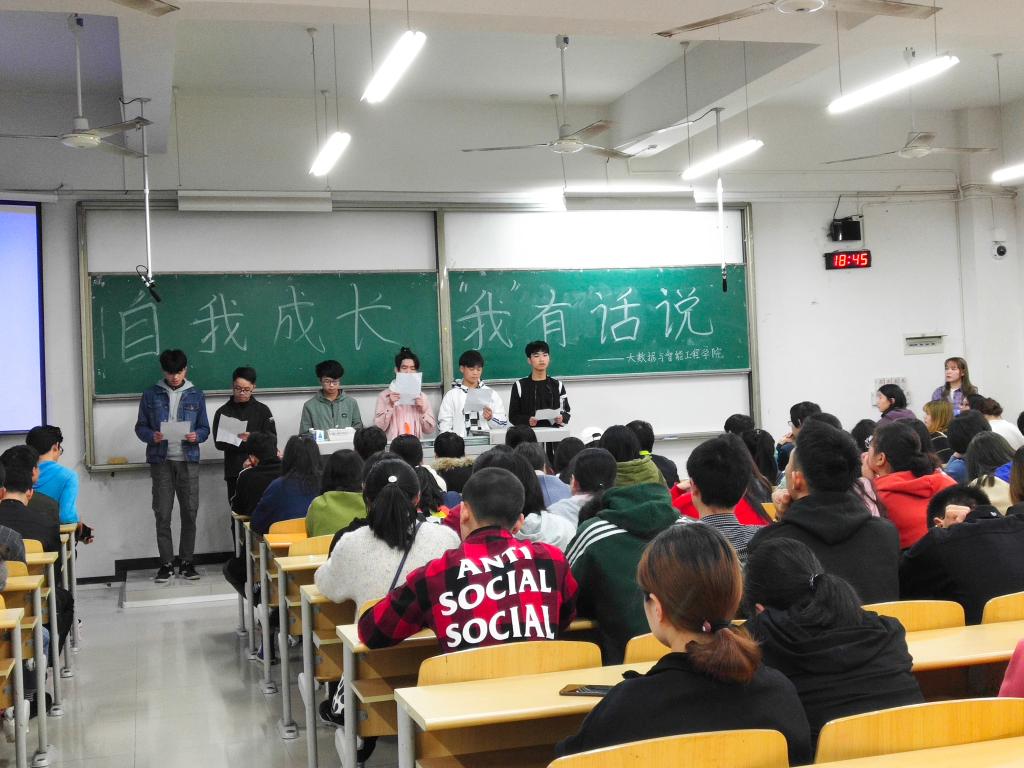 物联网2班文娱委员程婷婷、员工杨洪琴为大家带来开场舞,带动了班会氛围;电子科学与技术1班男生朗诵《感悟责任》,虽不是字正腔圆,也没有抑扬顿挫,却也让大家感受到肩上、身上都沉甸甸的;《这个年纪》MV的播放,将班会带入高潮,歌词中、画面里都是现实的写照与感情的共鸣,牵起大家回忆种种。王子杭同学作为活跃在大大小小公司、公司活动的员工干部代表上台发言,结合忙碌中他们的收获鼓励大家丰富老员工活,积累人生财富;黄杰同学作为文体骨干代表发言,结合即将到来的运动会,倡议运动员、志愿者、观众等在各自的岗位上为公司做出积极的贡献。王红妹老师总结讲话,“成长路上·我有话说”主题班会上同学们呈现出来的毕竟有限,“我有话说”是希望同学们自己能够总结一个学期、一个寒假,对比身边优秀的同学,主动找差距、定目标,在成长的路上舍得付出,终得收获。