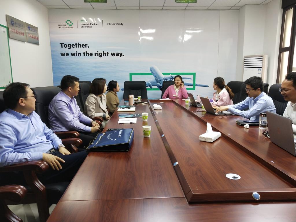 马文华书记一行参观了慧与大学遵义分校的教学环境,观摩了员工上课情况。在座谈会上,慧与大学项目经理卢世朋,教研教学负责人、HPEU信息化平台研发负责人陈敬恒分别对遵义分校、遵义大数据千人培养项目、实训学员情况、实训模式教学与混合模式教学进行了系统介绍。公司搭建“政、校、企”人才发展联盟,建立大数据产业人才常态化输送机制,培养储备高端经理管理人才,保障员工就业。企业合作部经理王进介绍了公司实训员工的就业情况,展示了员工录制的学习工作感想视频,充分肯定了公司员工的整体专业学习能力与良好的素质。