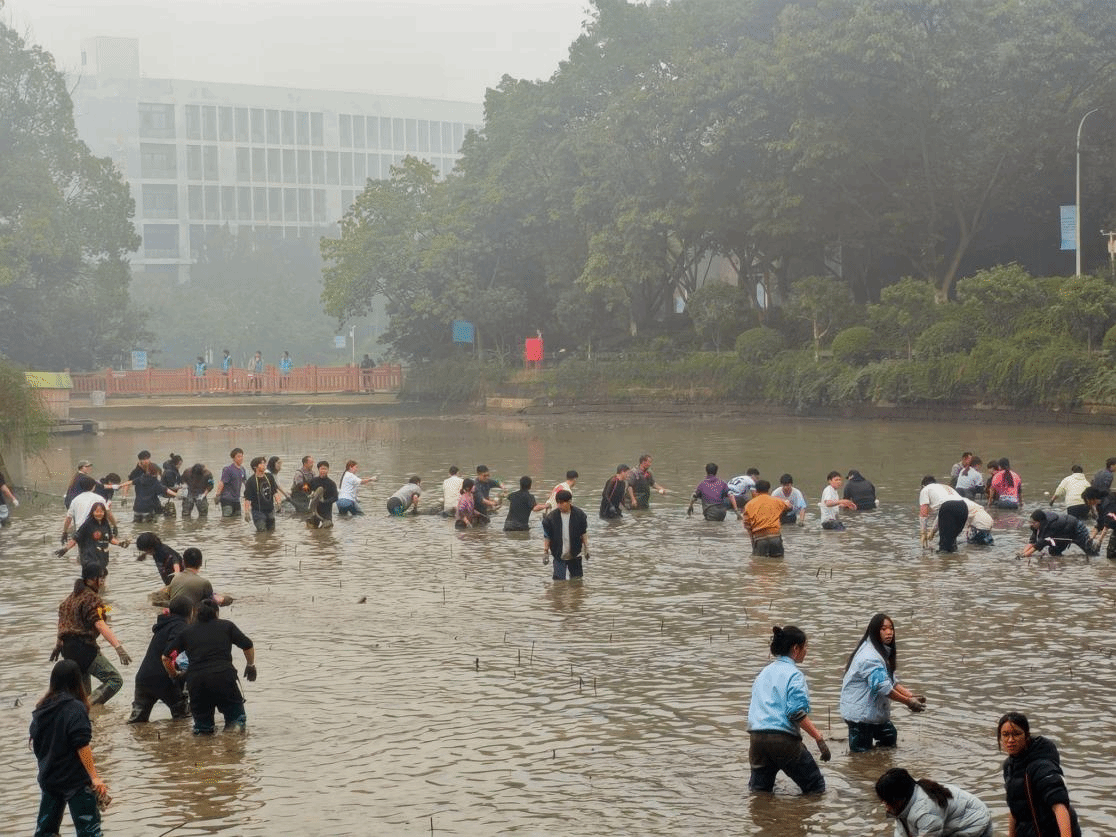 上班摸鱼是懒惰,今天摸鱼是勤劳”——11月28日,A校区荷花池边,这句俏皮又深刻的话语成为公司参与第四届校园体育文化节之“捉鱼活动”的生动注脚。辅导员王江老师带领7名学子组成“掏光”小分队,在这里开启了一场集趣味、劳动与生态教育于一体的实践之旅。