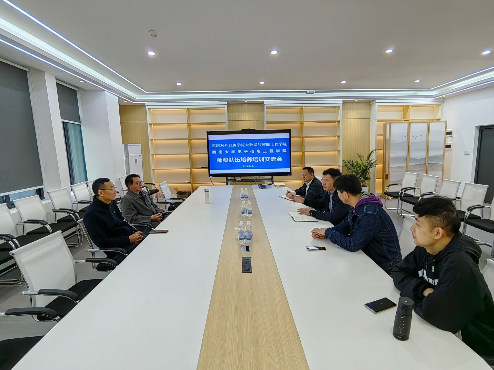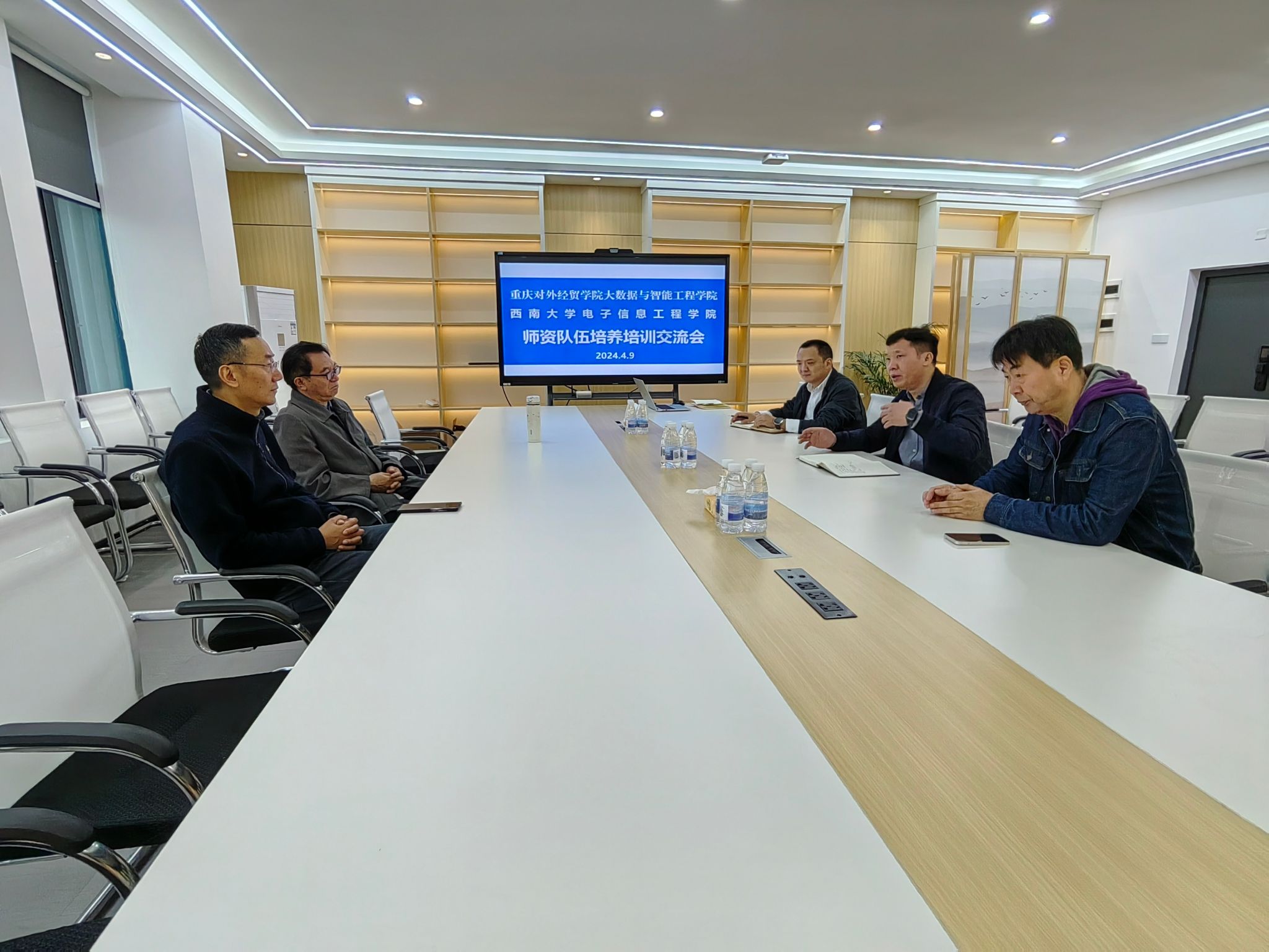 2024年4月9日,西南大学电子信息工程公司熊海灵书记来公司就团队队伍培养方面进行交流。董事长助理、公司常务副经理李川,人事处处长刘卫民,公司副经理唐士、教师代表参加交流座谈会,会议在公司9425接待室举行。