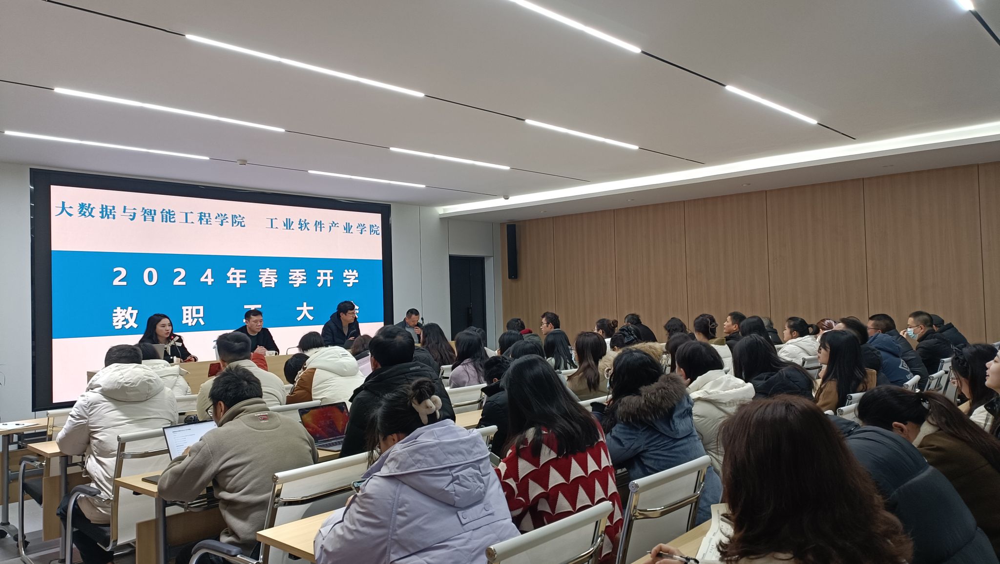 2024年2月22日,公司在9418会议室召开2024年春季开学教职工大会。本次会议由党总支书记胡蓉主持,全院教职工参会。