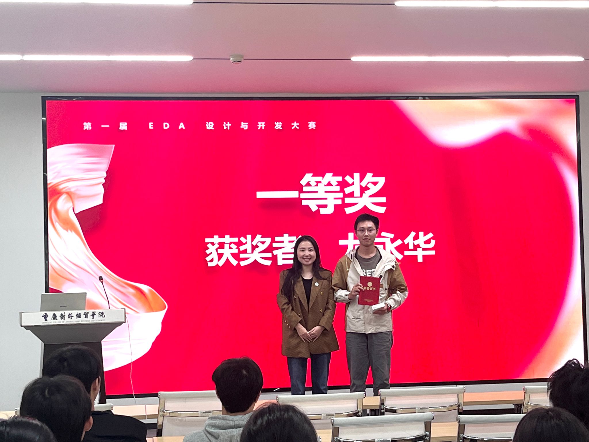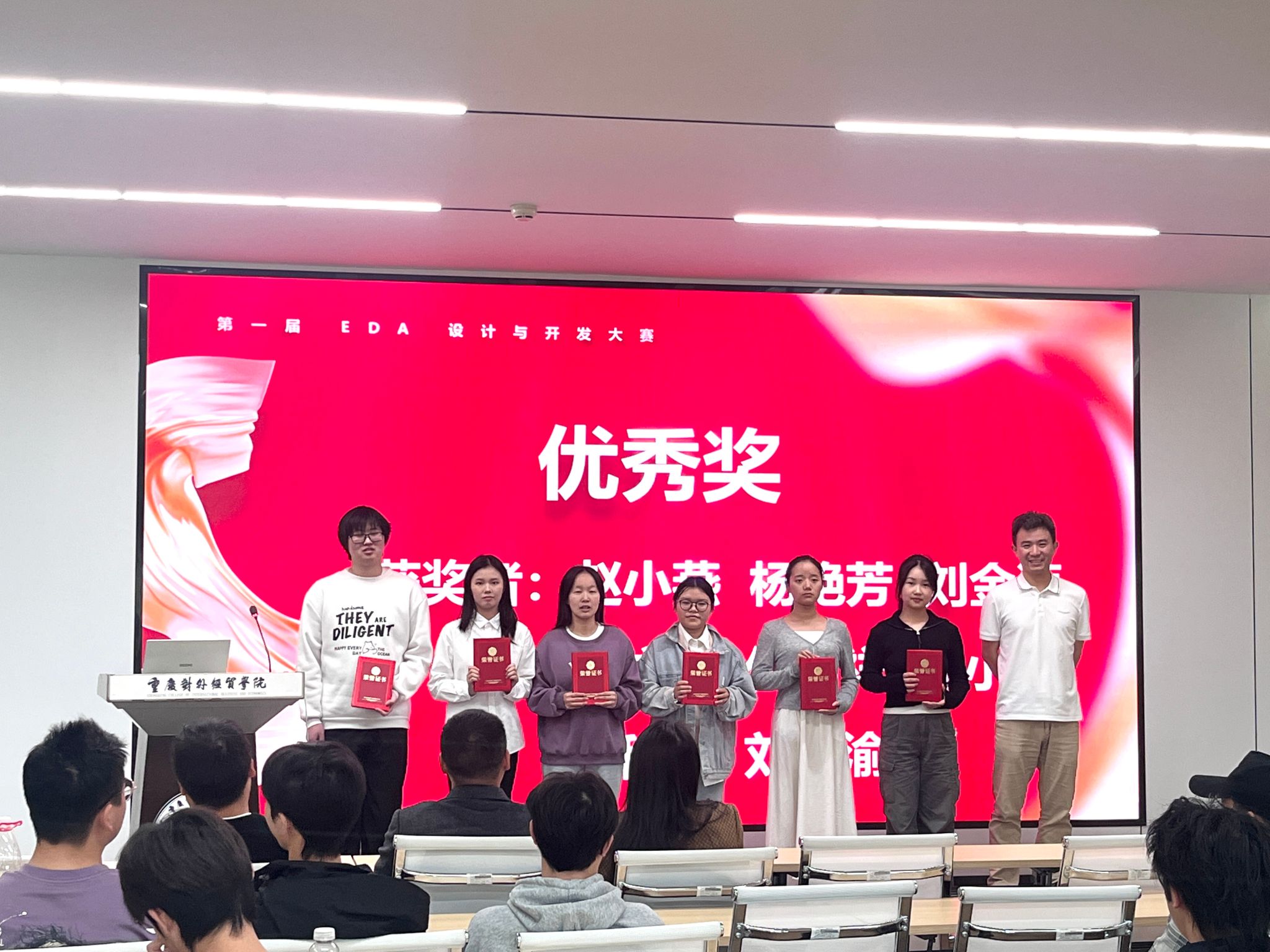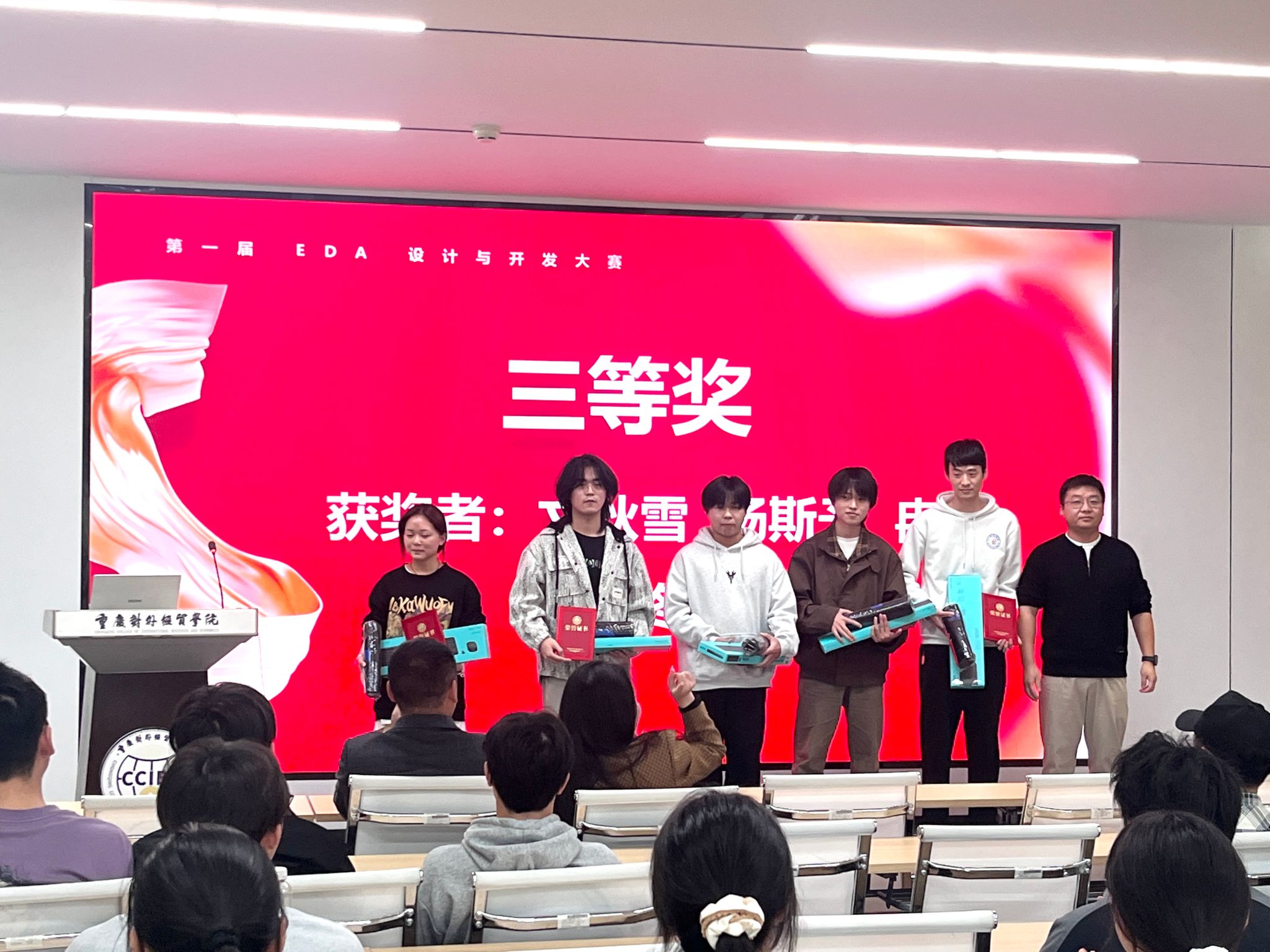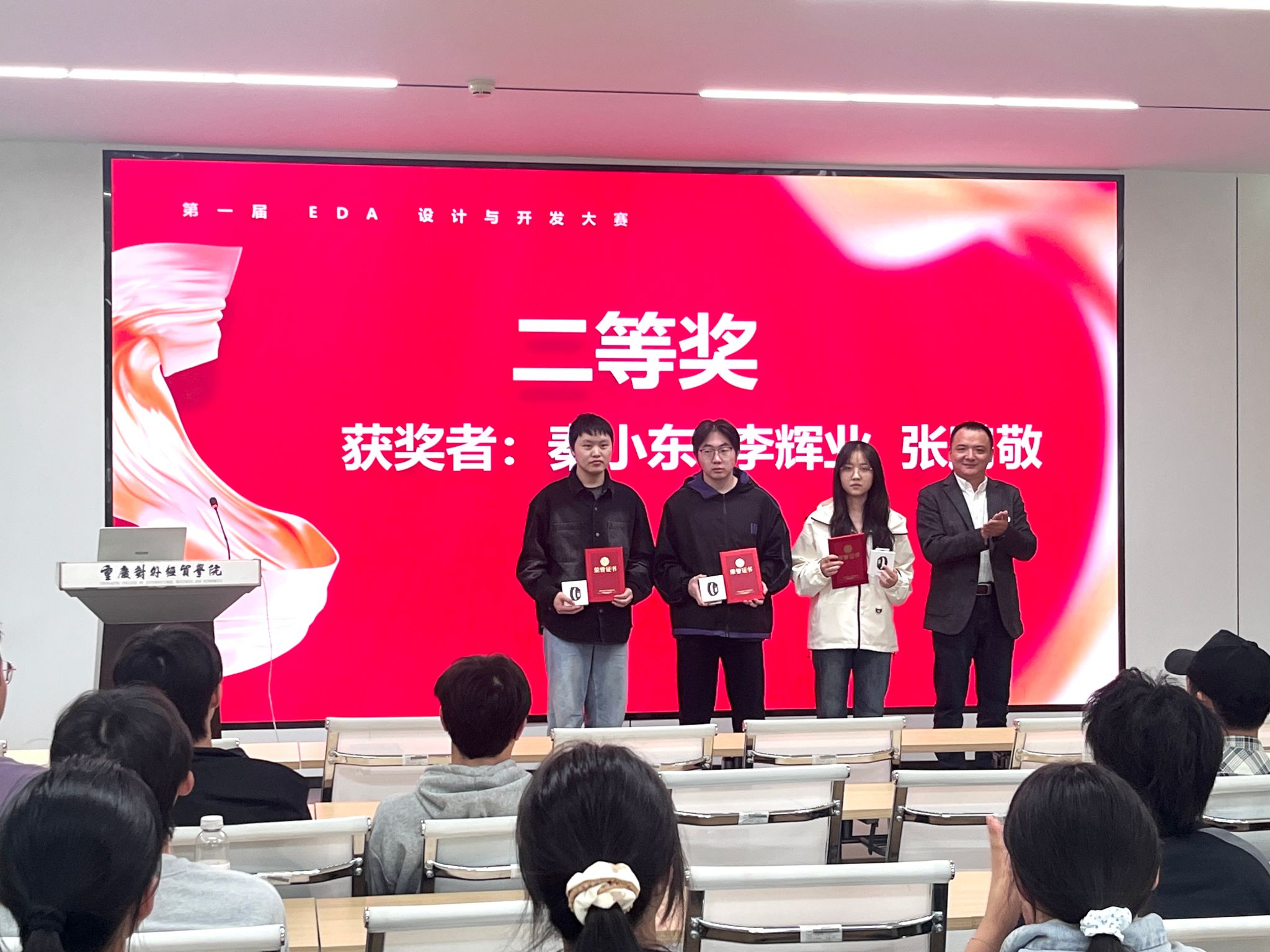 经评委团队多轮评审、严格打分,17名选手凭借扎实的专业功底与出色的实操能力脱颖而出:尤永华获一等奖,秦小东、李辉业、张鹏敬获二等奖,文秋雪、杨斯予、冉辰、汪叮咚、刘体锐获三等奖,赵小燕、杨艳芳、刘金源、黄依萍、代锡祥、邓小凤、杜秋菊、刘江渝获优秀奖。10月23日,第一届EDA设计与开发大赛颁奖典礼在A9418举行。公司胡蓉书记、唐士副经理、电子科学与技术系周杰主任及专业教师代表出席,与参赛选手们共同见证荣誉时刻。