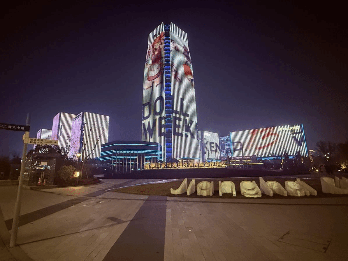 (本次设计的IP形象被投放至会场的外墙上)