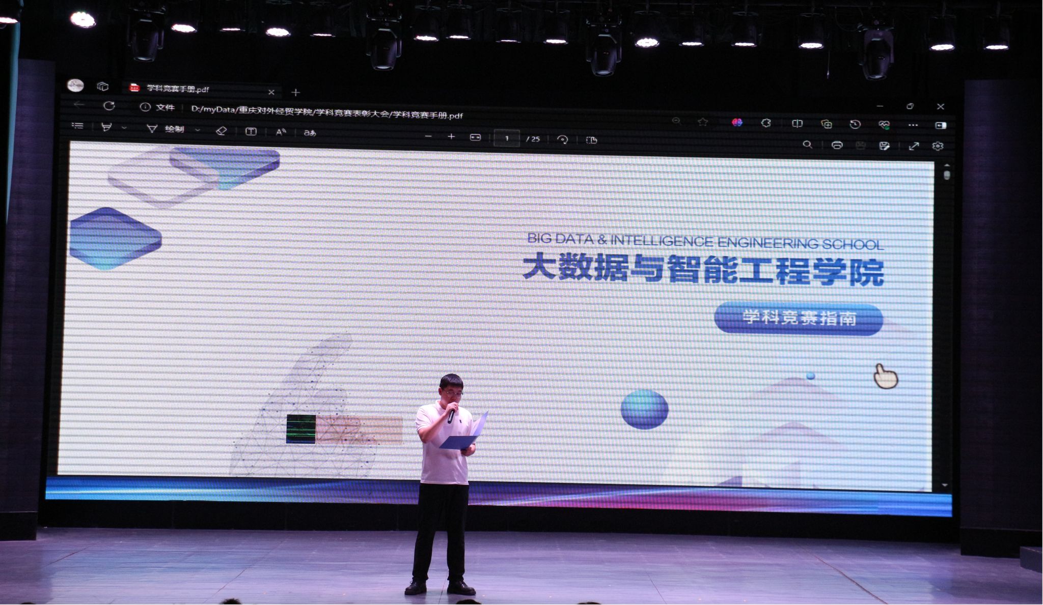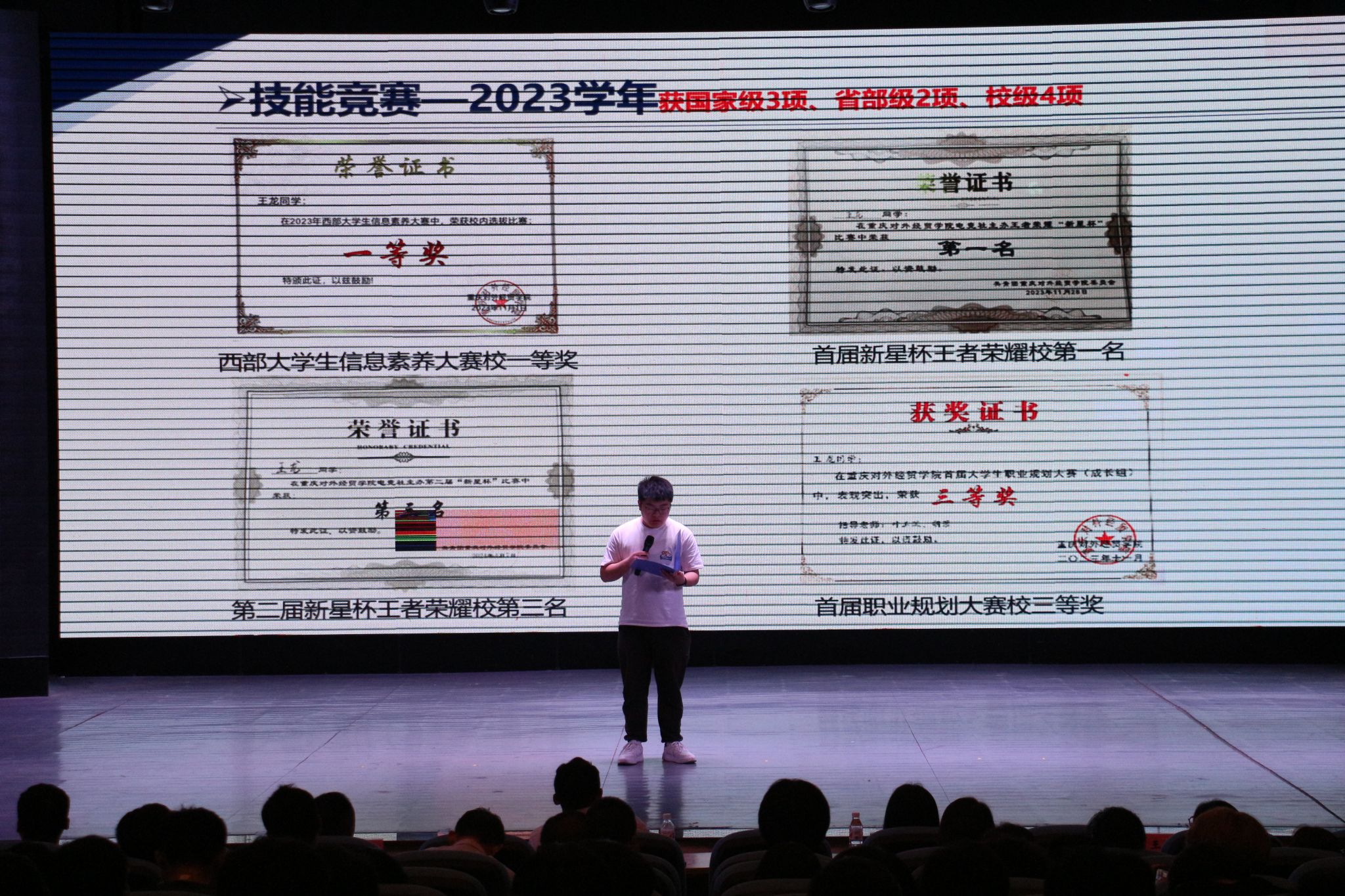 员工代表王龙同学分享了自己在校期间所获竞赛荣誉,并号召同学们要以热爱出发,抓紧自己的空闲时间,主动学习专业知识,提高自己的专业技能,广泛参与学科竞赛,在竞赛中不断成长。
