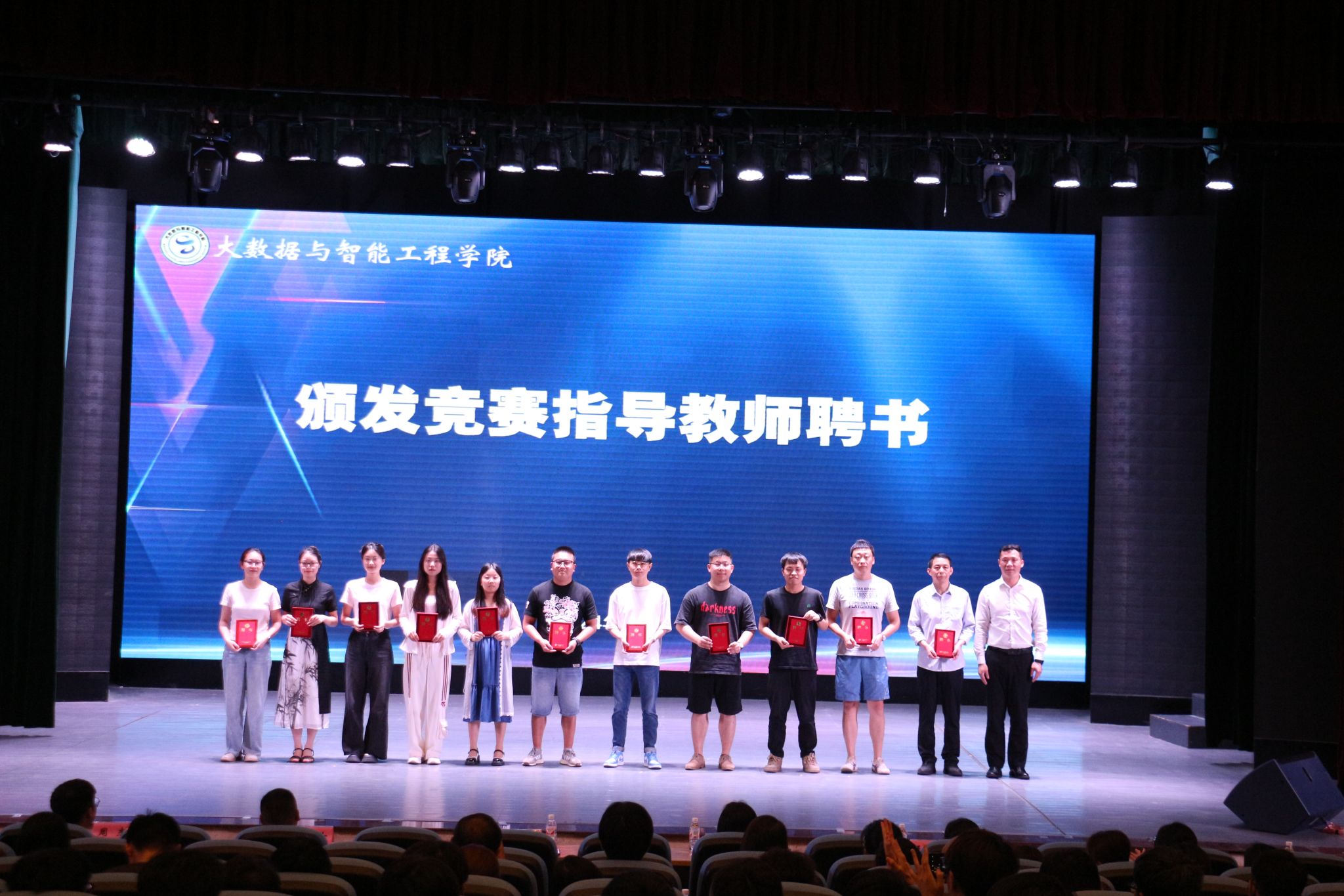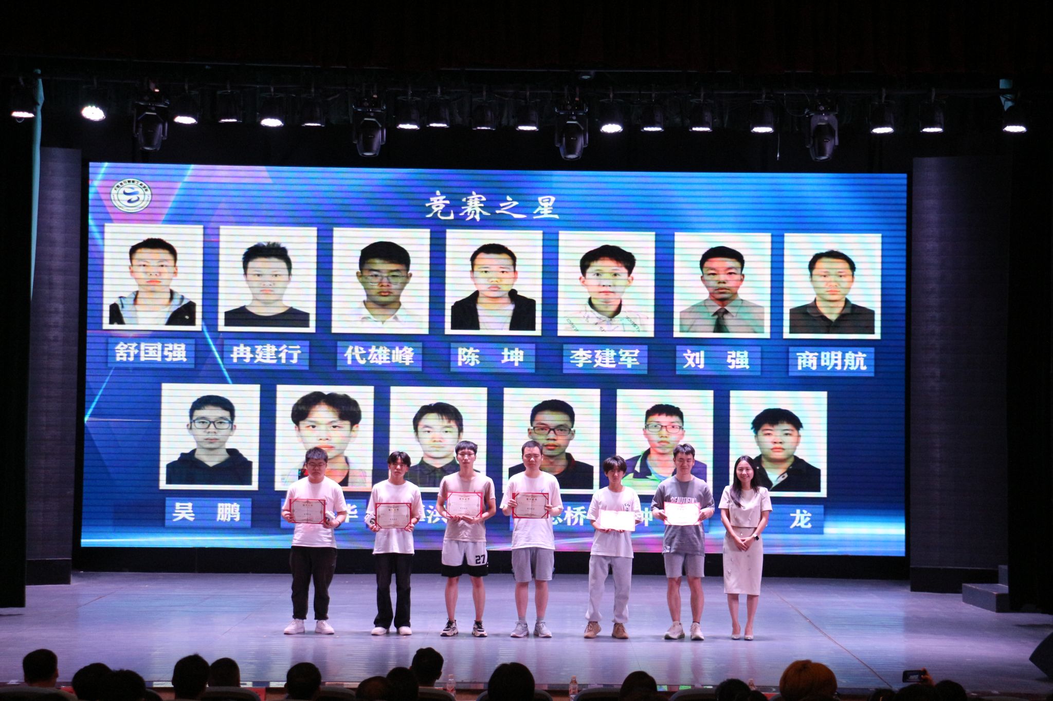 表彰环节中,唐经理为第四届老员工程序设计大赛中表现优异的同学进行颁奖;胡书记为在2023-2024年度学科竞赛中成绩突出,被评为公司“竞赛之星”的同学进行颁奖。