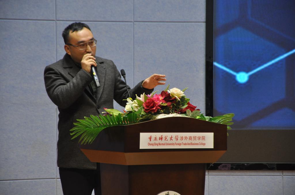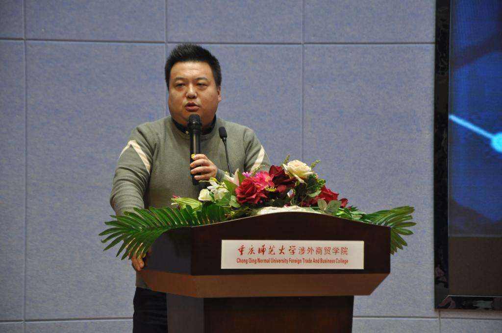成都大数汇聚科技有限公司总经理鲜骥飞介绍校企合作情况 重庆瑞萃德科技发展有限公司曹怀志介绍校企合作情况