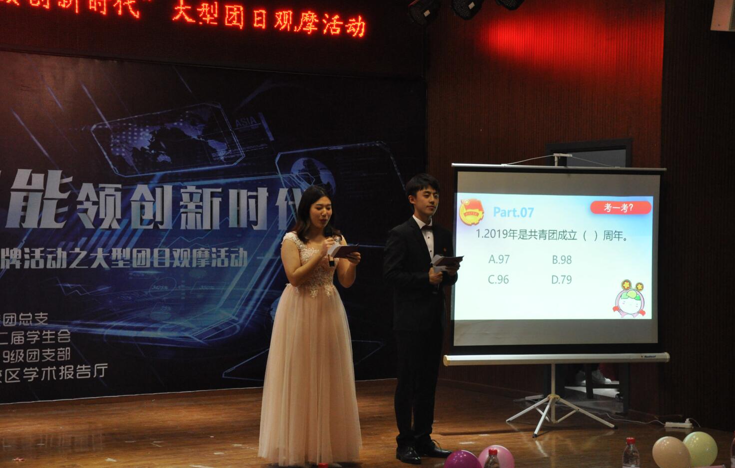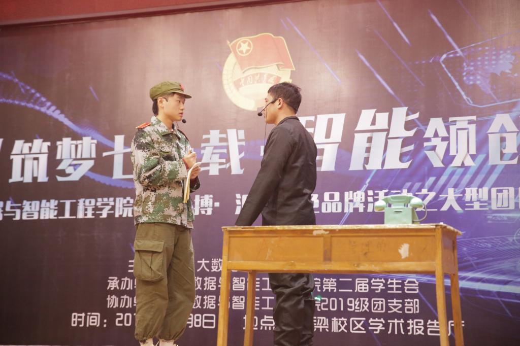 活动开始之前,2019级大数据五班带来的暖场节目《稻香》温馨和谐,充分展现了同学们的团结友爱;随后,主持人介绍莅临活动的嘉宾;活动在雄伟庄严的中国共产主义青年团团歌中正式拉开帷幕;大数据七班的雷明星同学用激昂的演讲展现新时代青年老员工的爱国情、强国志和报国心;紧接着开始了一个又一个幽默诙谐又不失格调的节目表演;活动过程中穿插了团学知识讲解与团学知识抢答、现场抽奖互动环节,赵知春老师和吴云可学长带来的歌唱表演将此次活动推向高潮;活动最后,王红妹老师总结讲话,对到场嘉宾再次表示感谢,并指出了此次活动的不足之处,现场为团员青年普及了“班团一体化建设”,“强三性去四化”,同时布置了团支部书记年度满意度测评相关工作,希望全体班团干部充分发挥主观能动性,发扬创新精神,共同致力公司发展。