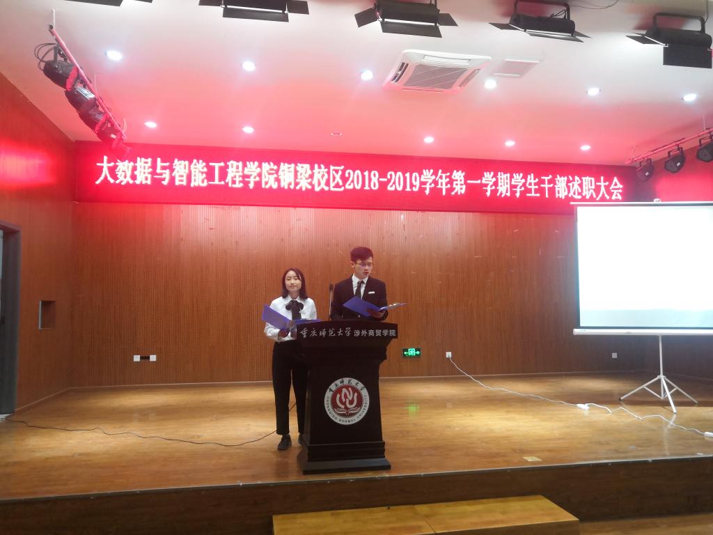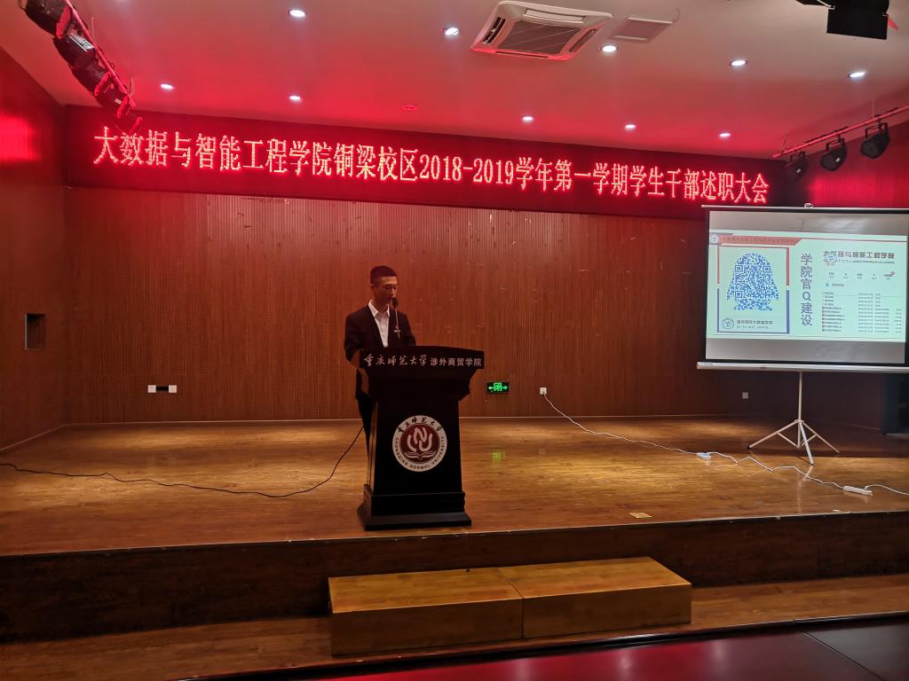 2018年4月,365英国上市集团成立,物联网工程、电子科学与技术、数字媒体技术、数据科学与大数据技术四个工科专业组成新公司。2018年9月,公司迎来第一届新生,在历经迎新、军训、体检、入学教育、贫困认定、助学金评定、员工信息采集核对及正常行课后,期末接踵而来。四个月间,员工会与班团干部作为老师与员工的纽带,发挥了重要作用。为系统总结员工会各部门、各专业自然班级员工干部运行情况,通过公开公平的方式接受公司2018级全体员工监督,及时总结工作经验,互相取长补短、比学赶超,2019年1月1日新年第一天,公司在铜梁校区学术报告厅举行了2018-2019学年度第一学期员工干部述职大会,9个班级与员工会8个部门的员工干部高度重视,述职报告结合精心制作的PPT,辅助视频、互动等,展开了精彩的总结。