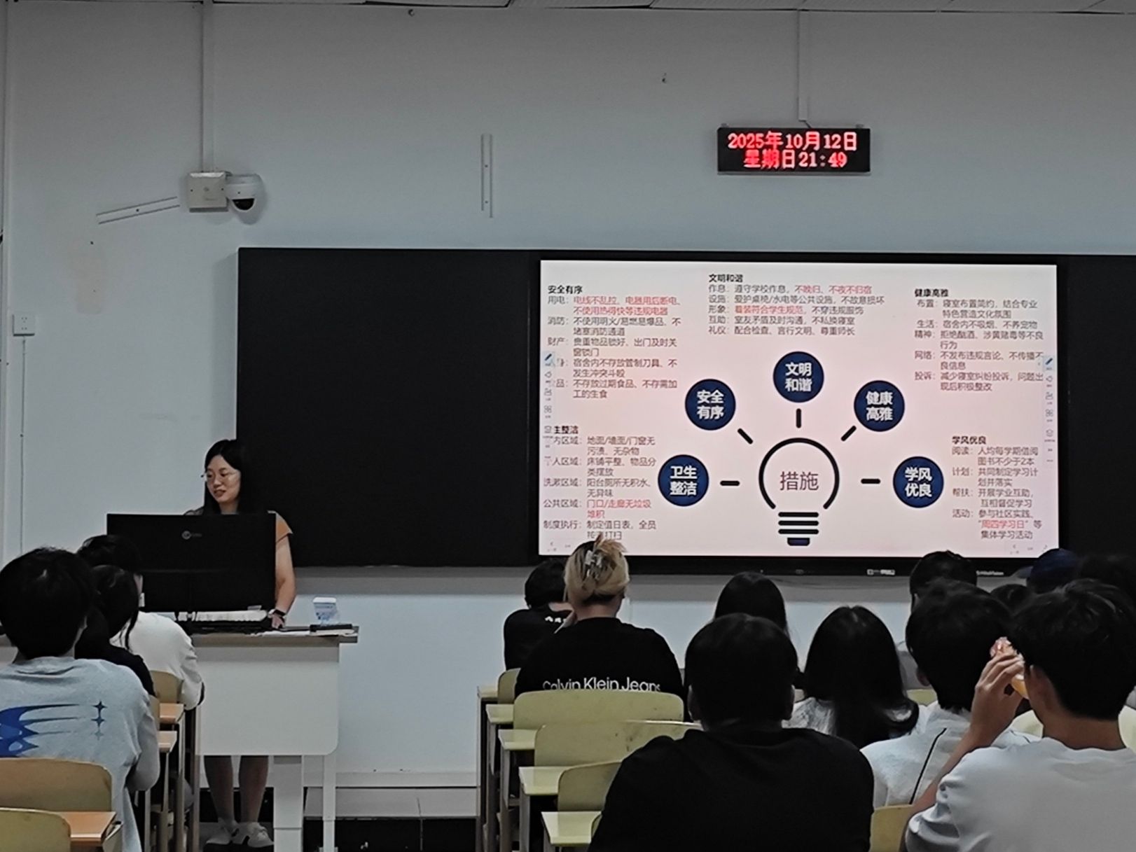 周憬喏老师进行创建文明寝室宣传班会的宣讲