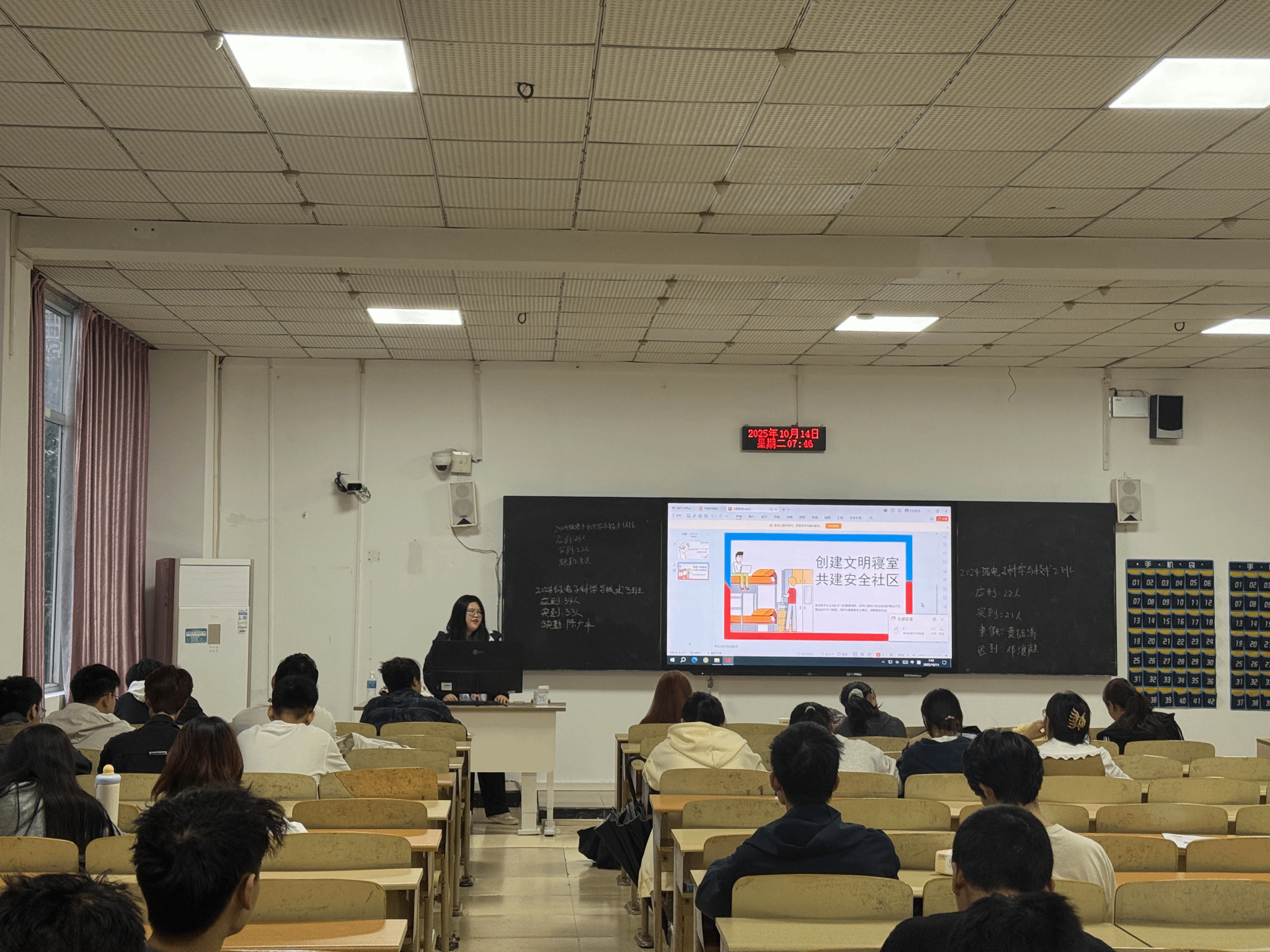 蒋偲懿老师进行创建文明寝室宣传班会的宣讲