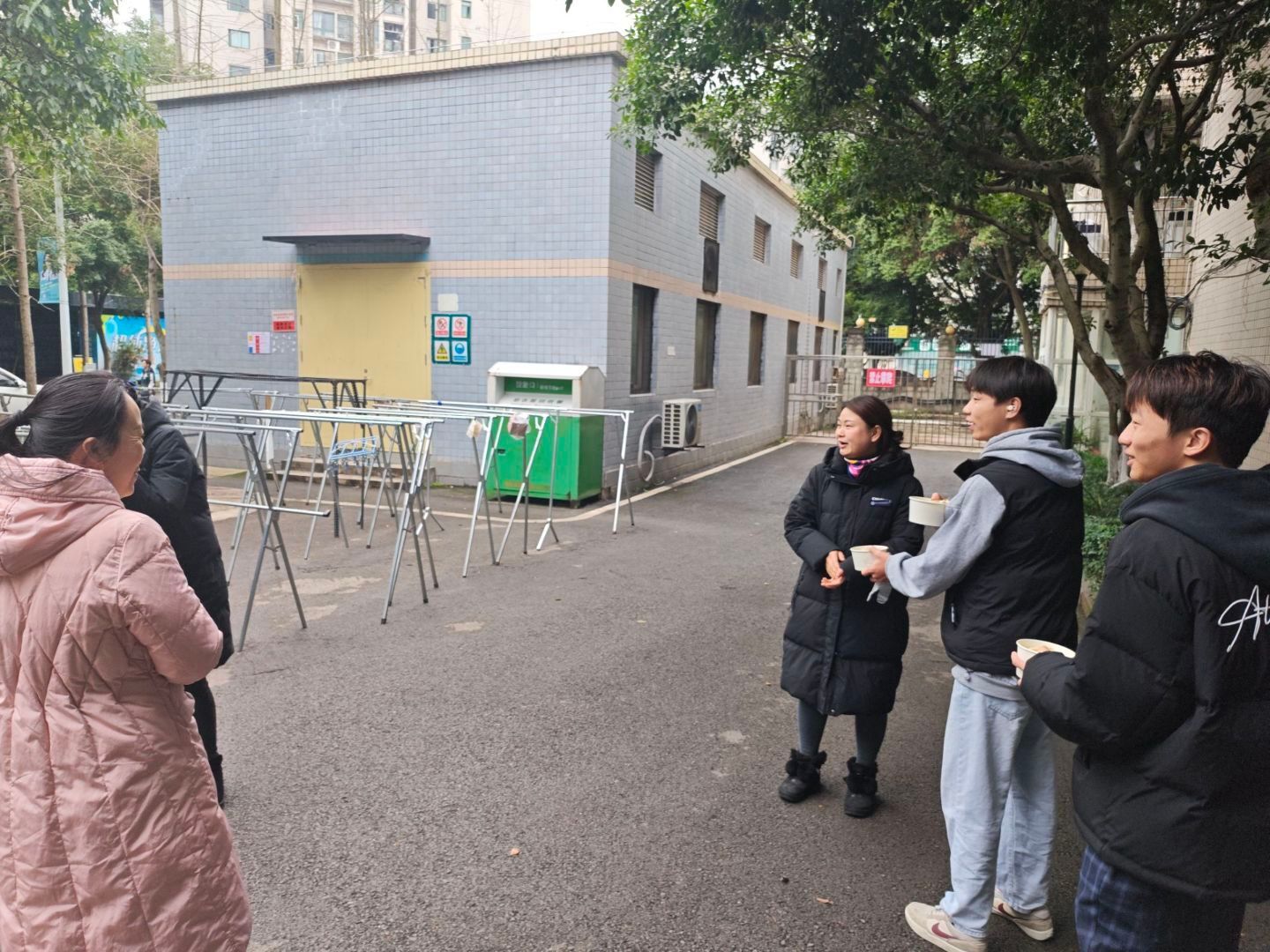 饺子出锅,热气蒸腾。同学们分头行动,一队将热饺送至员工社区周边的保安亭、保洁休息室、宿管处,向默默坚守的校园工作者道声“辛苦了”;另一队则与同窗分享,饺香袅袅、融化陌生、传递温暖。