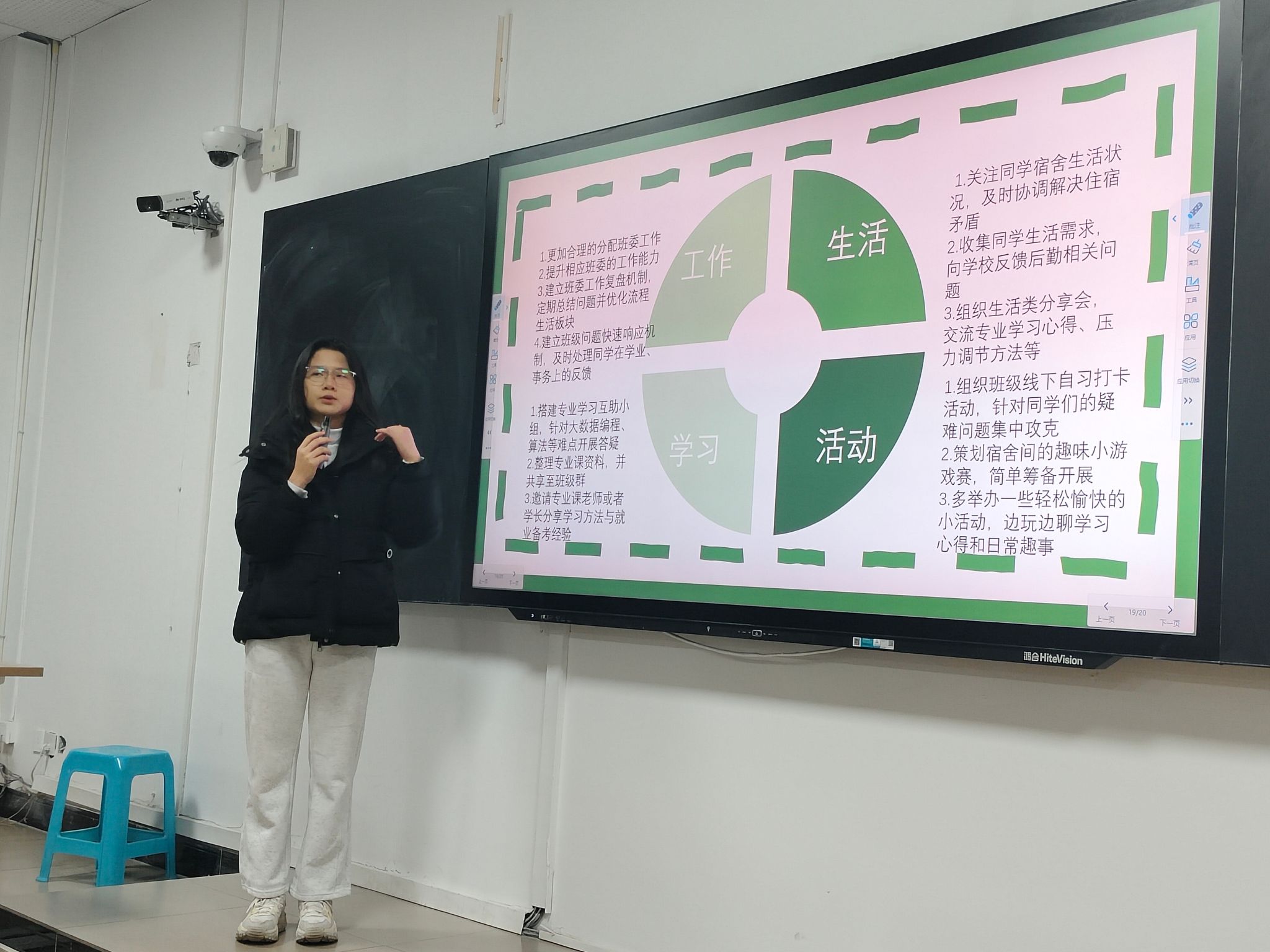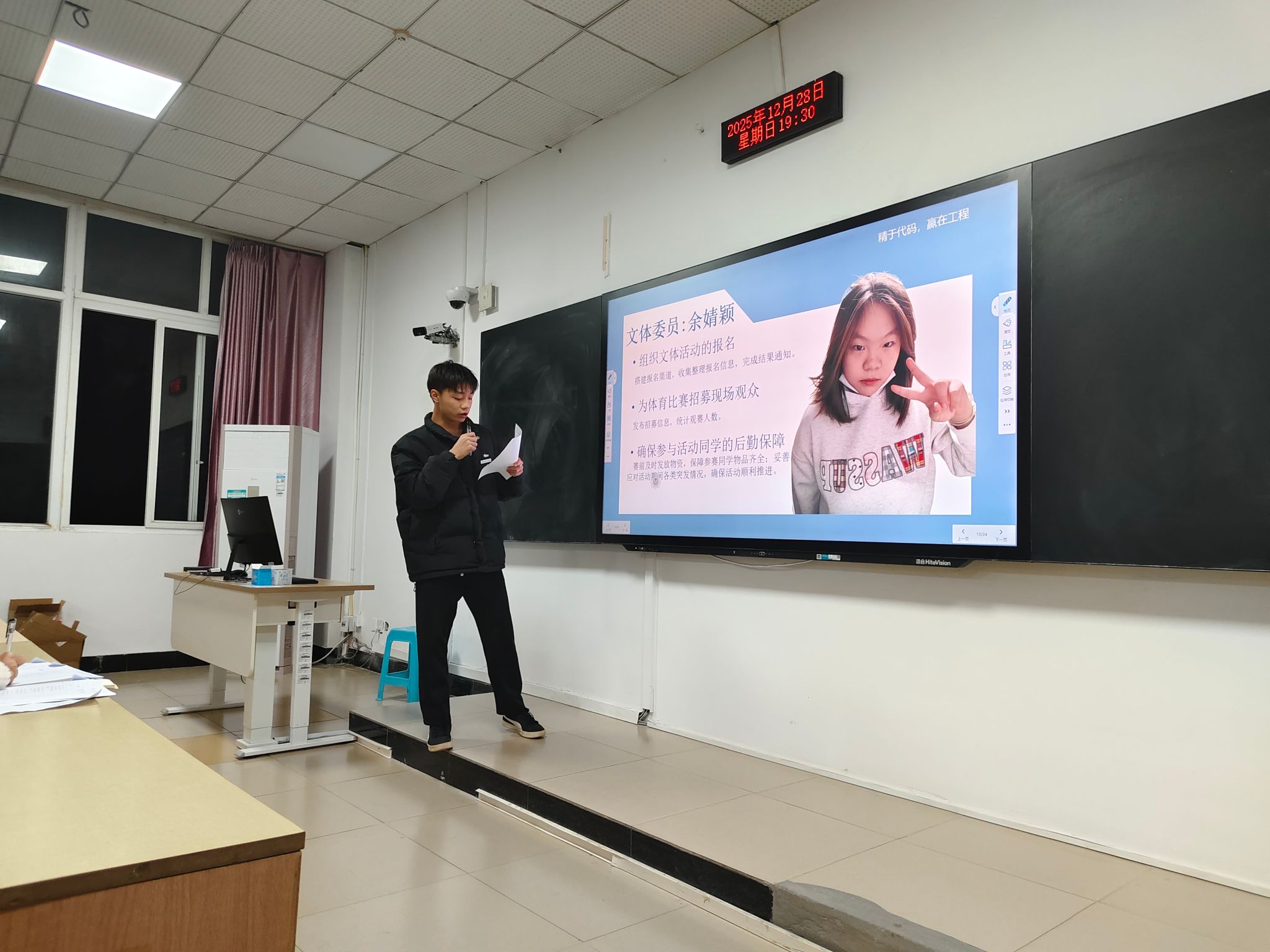 为系统复盘班委工作,凝聚班级发展合力,明确未来建设方向,12月28日,2025级软件工程3-5班与数据科学与大数据技术4-6班在A3402教室举办“履职守初心,聚力共成长”班委期末述职暨班级发展研讨会。