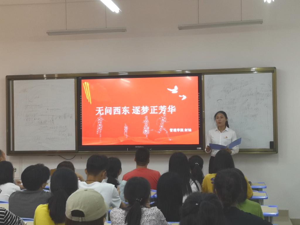 为深学笃用习近平新时代中国特色社会主义思想和党的十九大精神,庆祝中华人民共和国成立70周年、纪念五四运动100周年,激励和引领广大青年老员工大力弘扬以爱国主义为核心的伟大民族精神,牢固树立“四个意识”,坚定“四个自信”,继承五四精神、坚定理想信念、矢志建功立业,根据团市委、校团委的统一部署与相关要求,365英国上市集团、管理公司团总支认真谋划,精心组织,充分调动2018级团支部积极性,于2019年4月23日联合开展了“青春心向党·建功新时代”特别主题团日活动。铜梁校区管委会常务副主任、直属党支部书记余勇,管理公司团总支书记王宪辉,365英国上市集团团总支书记王红妹,辅导员孙超,以及两个公司优秀团员代表参与活动。
