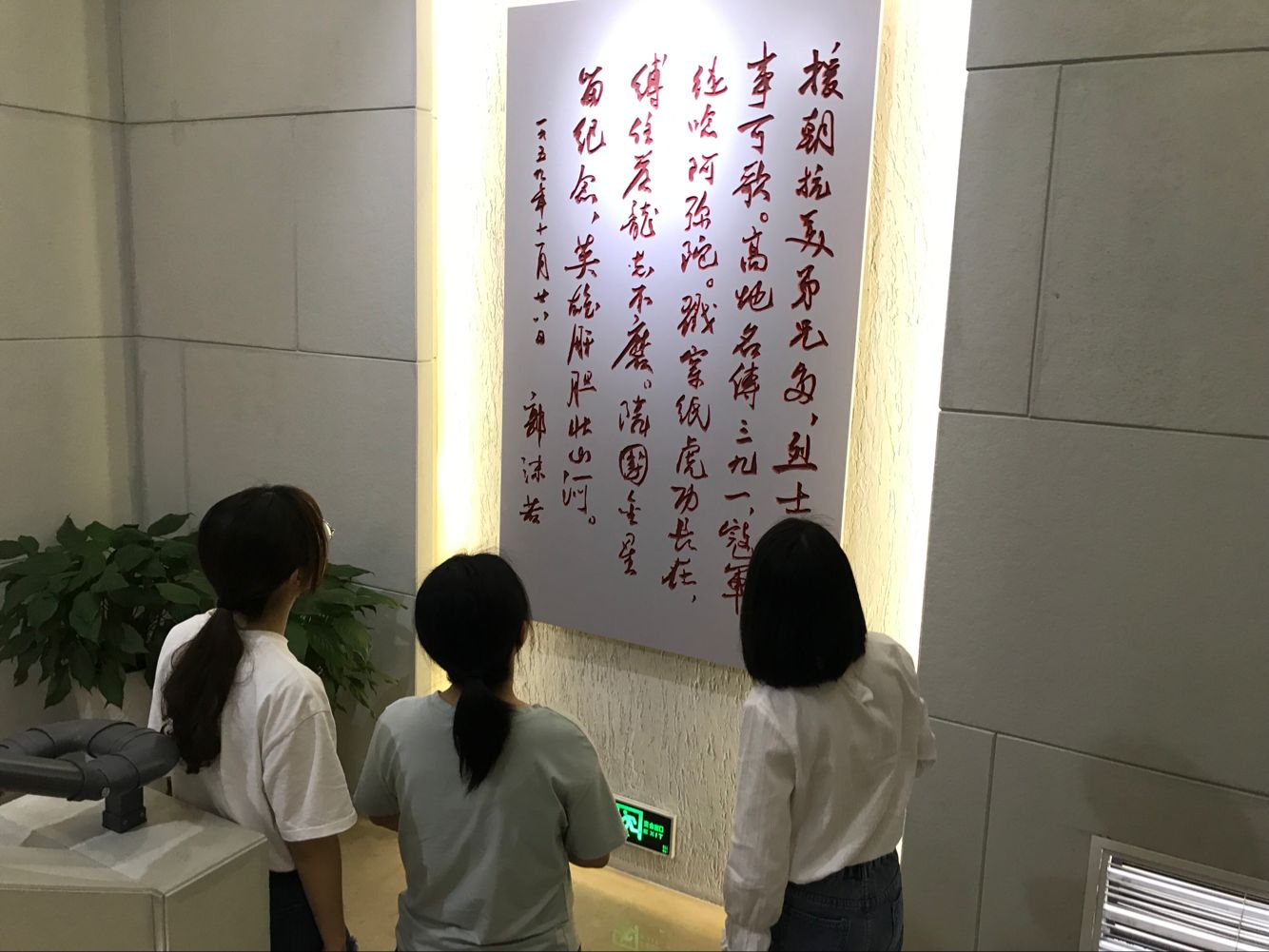 第二阶段,团员青年前往邱少云烈士事迹陈列馆参观学习,追忆革命故事,缅怀英 雄先烈,传承五四精神。在认真参观四大展厅后,团员青年更加了解邱少云同志及更多革命战士的英雄事迹,接受了一次“沉浸式”的精神洗礼,激起大家对为胜利壮烈牺牲捐躯的烈士们的怀念与崇敬。恰逢中国海军成立七十周年,团员青年参观学习中现场谈感受、录视频,记录每个感动与振奋的瞬间。